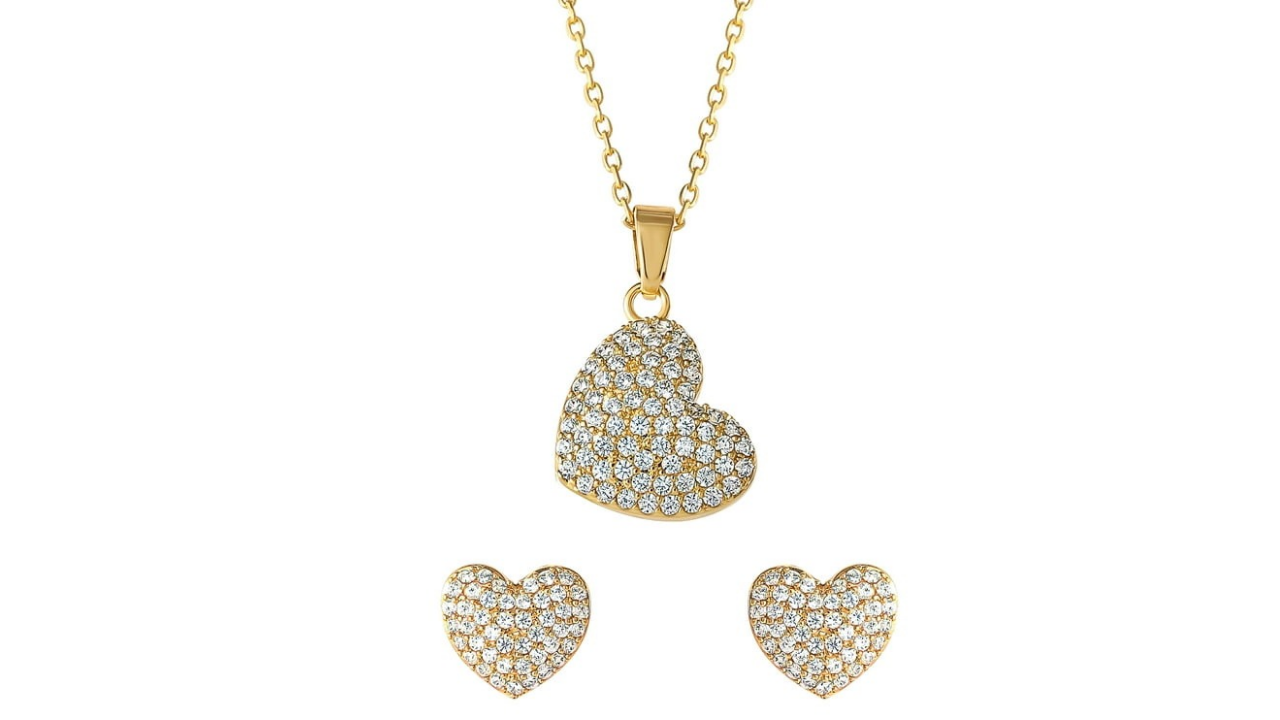 Believe by Brilliance-Women’s 14kt Gold Flash Plated Cubic Zirconia Heart Earring and Pendant Set, 16″ + 2″