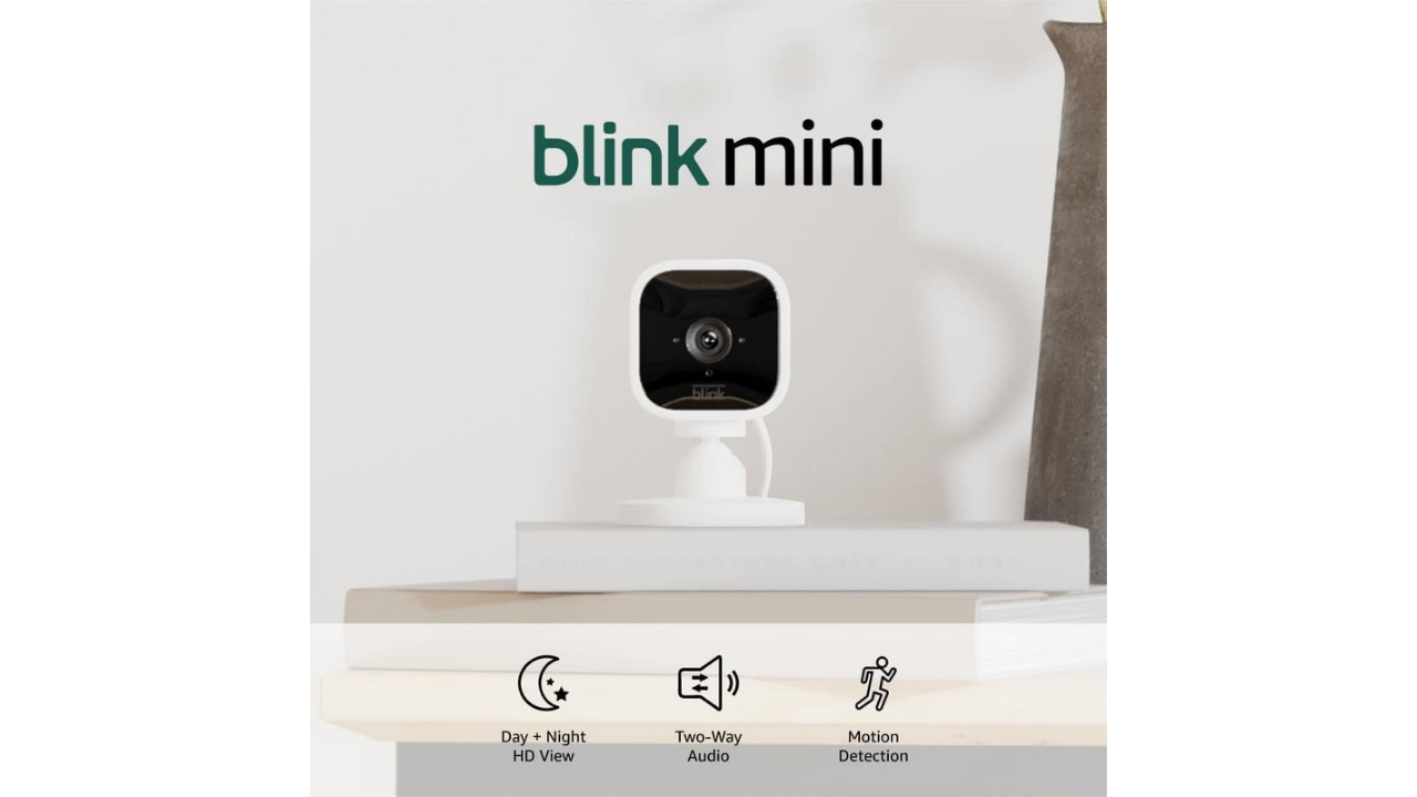 Blink Mini – Compact indoor plug-in smart security camera, 1080p HD video, night vision, motion detection, two-way audio, easy set up, Works with Alexa – 1 camera (White)
