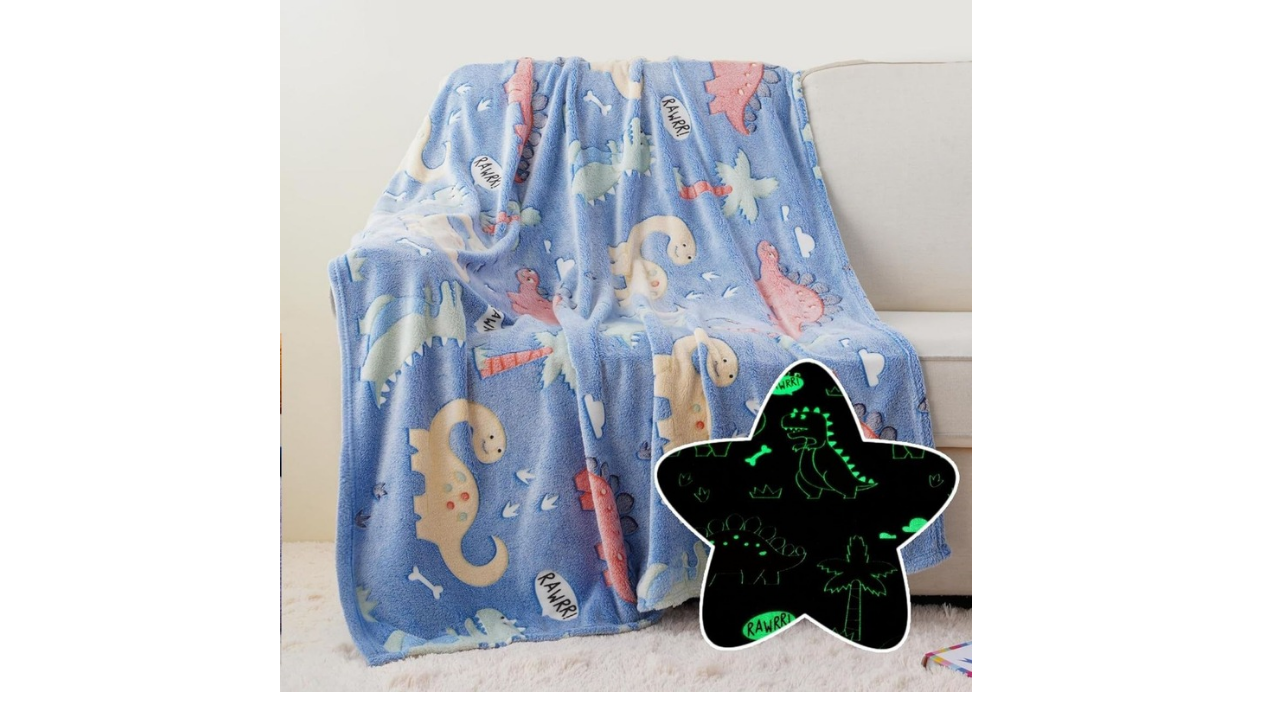 Bunnikins & Clover Glow in The Dark Dinosaur Blanket Gifts for 1-10 Year Old Boys Girls