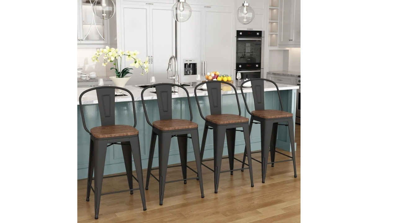 Set includes four matching counter-height stools