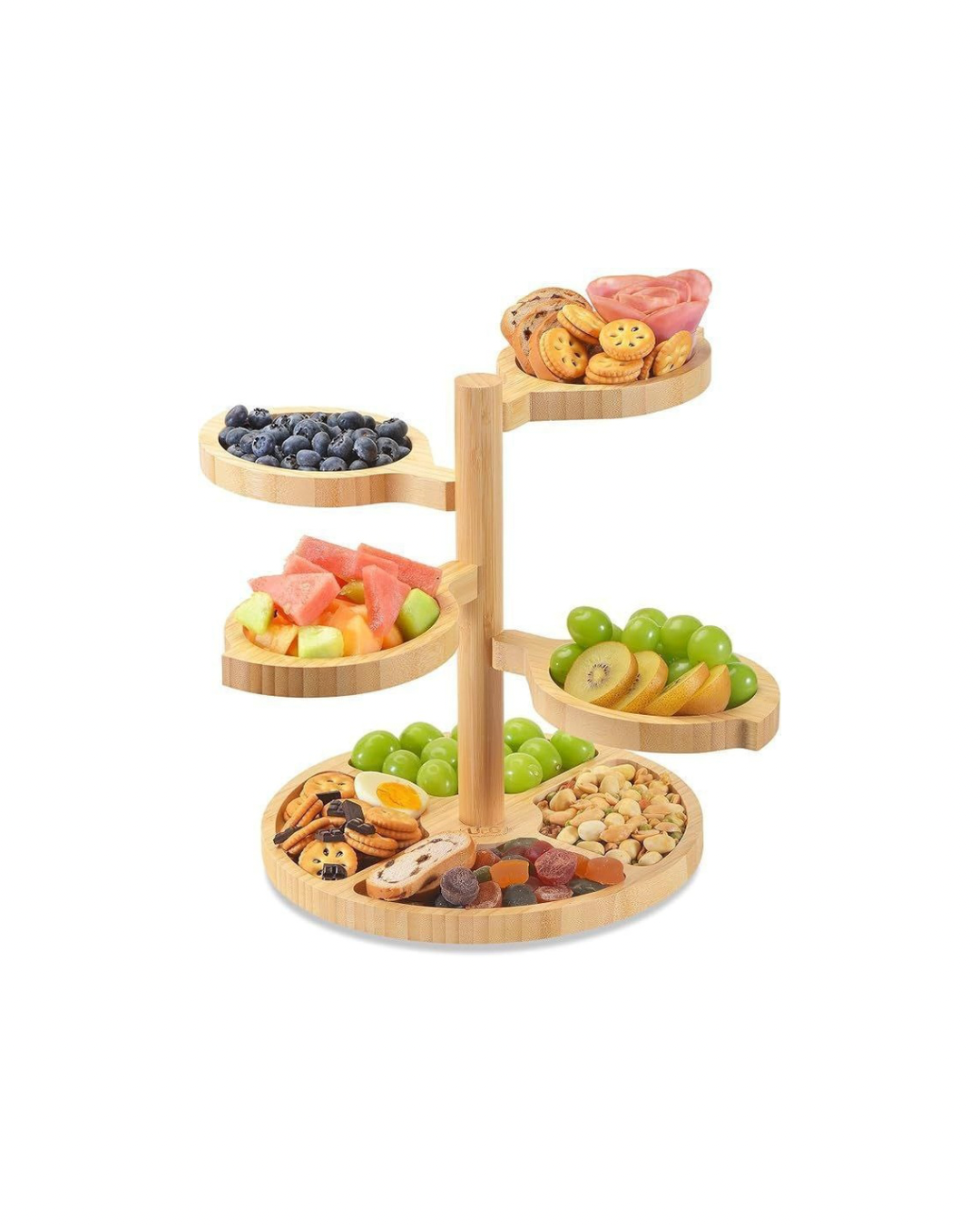 UNIQUE CHARCUTERIE BOARD SET – Our charcuterie boards gift set is a stunning centerpiece for your entertainment events. With a 13 inch 360° swivel cheese board and 4 detachable cheese tray. Large capacity, but doesn’t take up desktop space, nor affect the visual aesthetics. There is a hole at the top of the pole where you can DIY decorations to mark your party theme and easily host a stylish and elegant high-tea party to entertain your honoured guests.