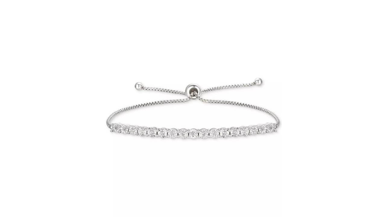 A hint of elegance. Add a bit of spark to your look with this diamond accented bolo bracelet.