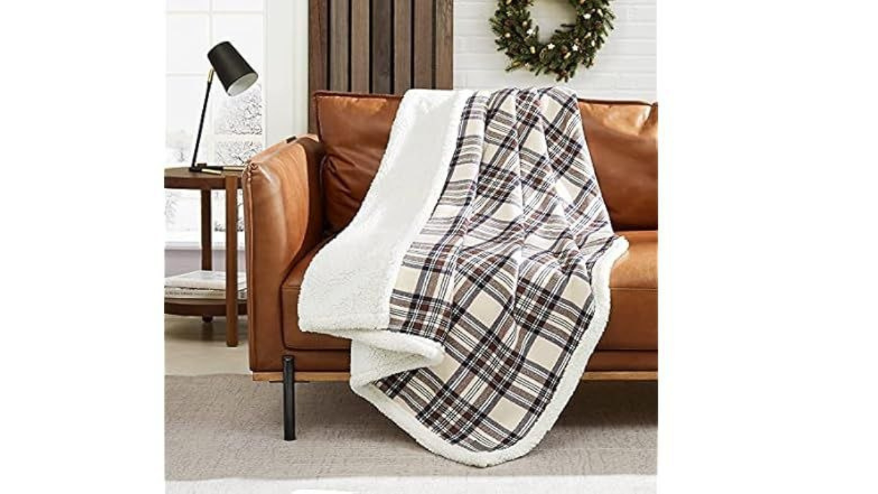 The Eddie Bauer edgewood flannel sherpa throw features a bold plaid design in shades of brown with a sherpa fleece reverse in white. This ultra-soft throw will look great in any room while keeping you warm and comfortable. The face of the throw features a brushed flannel and reverses to ultra-soft sherpa fabric. 80% polyester and 20% cotton. Throw measures 50″ l x 60″ w. Machine washable.