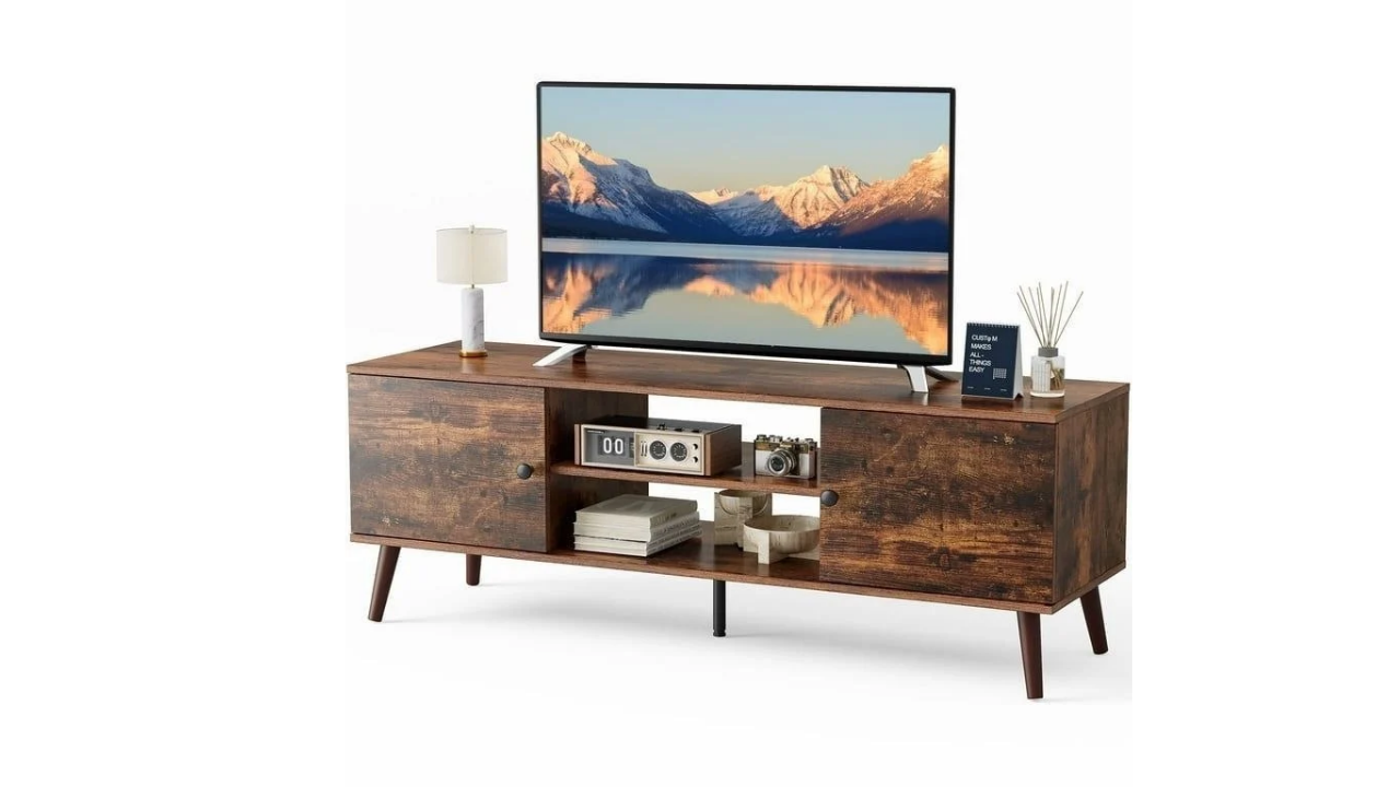 edx TV stand is crafted from engineered wooden board and is of superior quality. It can accommodate TVs ranging from 55-60 inches, with dimensions of 53.54″W x 15.75″D x 18.9″H. The console table is designed with two spacious cabinets that have cable management holes and soft-close hinges for noiseless operation. It is a versatile piece of furniture that can be used in various settings such as living rooms, bedrooms, or home offices. The open shelf is adjustable to three levels, making it suitable for various items of different heights. The TV cabinet comes with all the necessary tools and instructions for installation, and the installation process takes only 40 minutes. Then enjoy your leisure time with edx TV Stand!