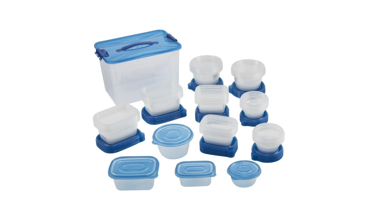 Comprehensive Set: This 92-piece Mainstays food storage set includes 46 containers and 46 lids, featuring one large tote and 45 smaller container sets for diverse storage needs.