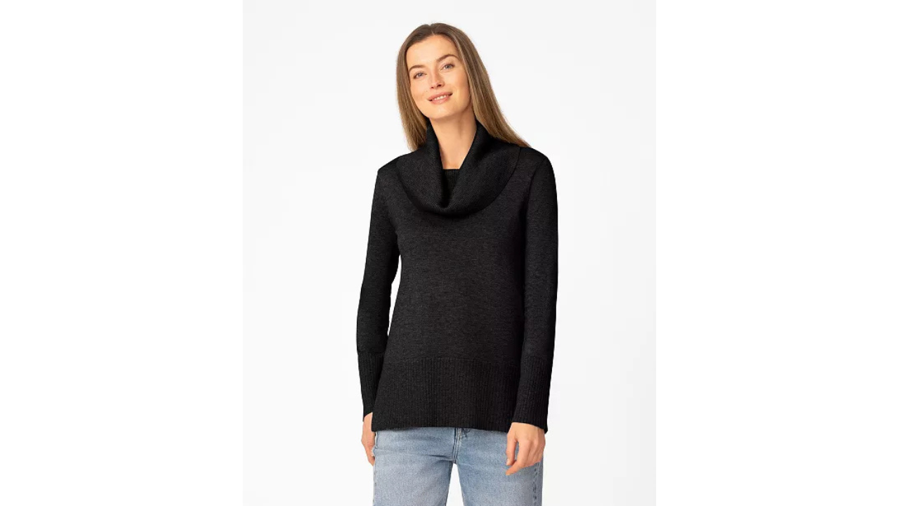 Warmth meets effortless style in this tunic by Melissa Paige. A cozy ribbed cowl neckline and wide cuffs set the tone for relaxed comfort, while the flattering length and easy drape make it a go-to layering essential.
