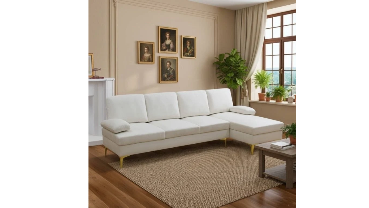 Elevate your home sanctuary with our Modern L-Shaped Sectional, a masterpiece of comfort designed to be the centerstage for both intimate family movie nights and lively social gatherings. Wrapped in luxurious, skin-friendly velvet and accented by contemporary blocky pillow arms, this 4-seat sofa seamlessly marries Mid-Century aesthetics with everyday functionality. Beneath its sophisticated exterior lies expert engineering: hand-tied eight-way springs provide premium, anti-sag support that ensures lasting durability