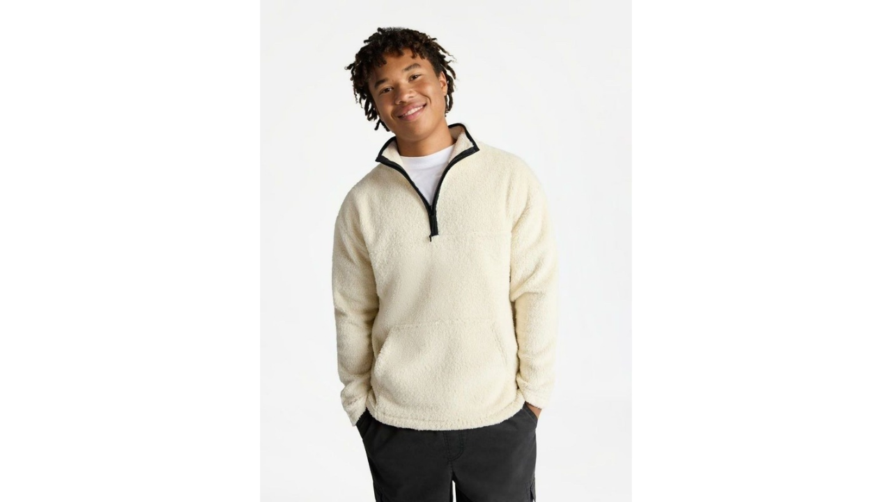 High pile, high-key flex. This No Boundaries High Pile Quarter Zip Fleece Pullover is serving max comfort with a chill, relaxed vibe—think super soft fleece, easy quarter zip, and a kangaroo pocket that’s basically storage on-the-go. Pair this pullover with sweats, denim, or joggers for instant cozy-core. It’s fleece that actually looks as good as it feels. Only at Walmart.