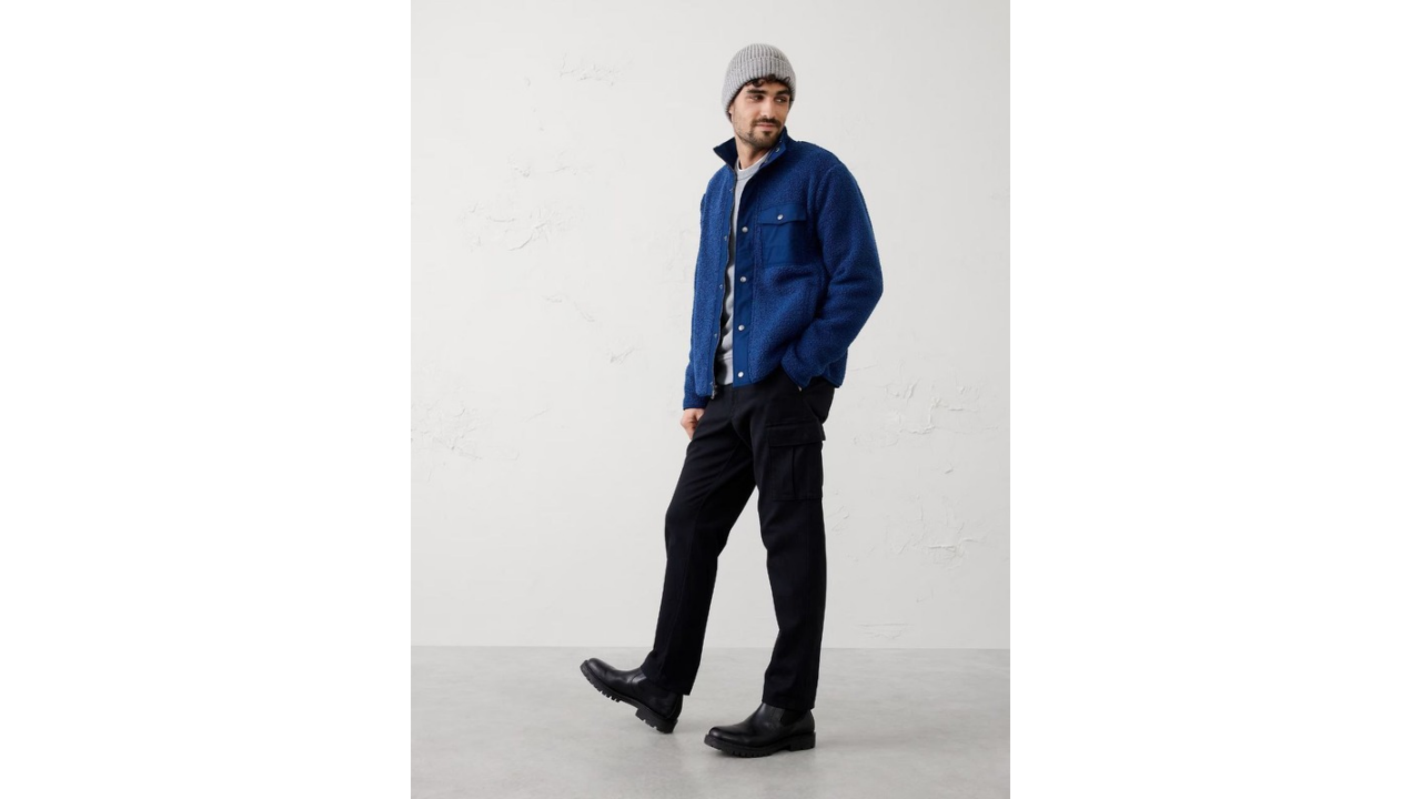 Super cozy and plush, this full-zip sherpa jacket features both snap and zipper closures for added versatility. Finished with modern mixed-media details for a fresh, functional look.