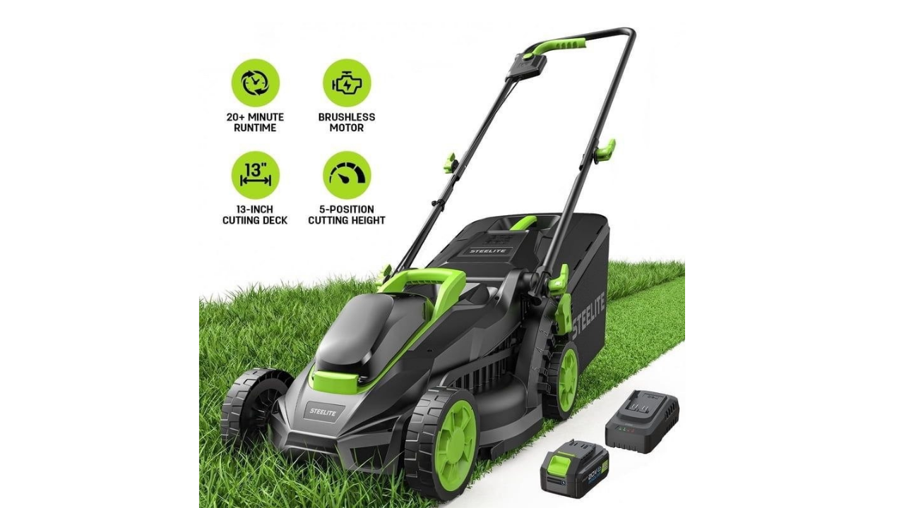 Steelite 13-Inch Cordless Lawn Mower is a lightweight, efficient solution for maintaining gardens, yards, and farms. Powered by a 21V brushless motor, it delivers reliable performance with minimal noise. This mower includes an 8-gallon grass bag for convenient collection and offers five adjustable cutting heights to suit different grass lengths. Its cordless design provides unmatched portability and ease of use, making it perfect for small to medium-sized outdoor spaces.