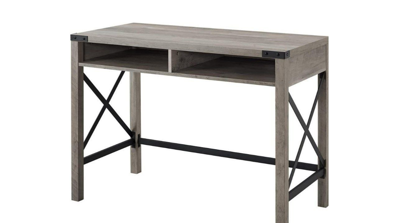 Walker Edison Callum Modern Farmhouse Metal X Writing Desk, 42 Inch, Grey Wash