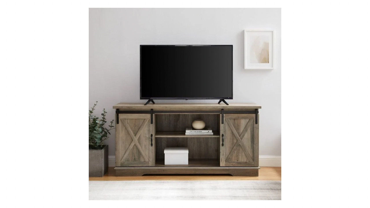 Walker Edison Sliding Farmhouse Barn Door TV Stand for TVs up to 65”, Grey Wash